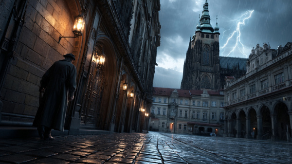 Představte si to: poklidná večerní Praha, první kroky do příběhu. Všechno začíná nenápadně. Jenže pak… blesk udeří do věže katedrály sv. Víta, země se zatřese – a z královské hrobky povstává Rudolf II.. Zmatený. Oživený. A potřebuje pomoc.