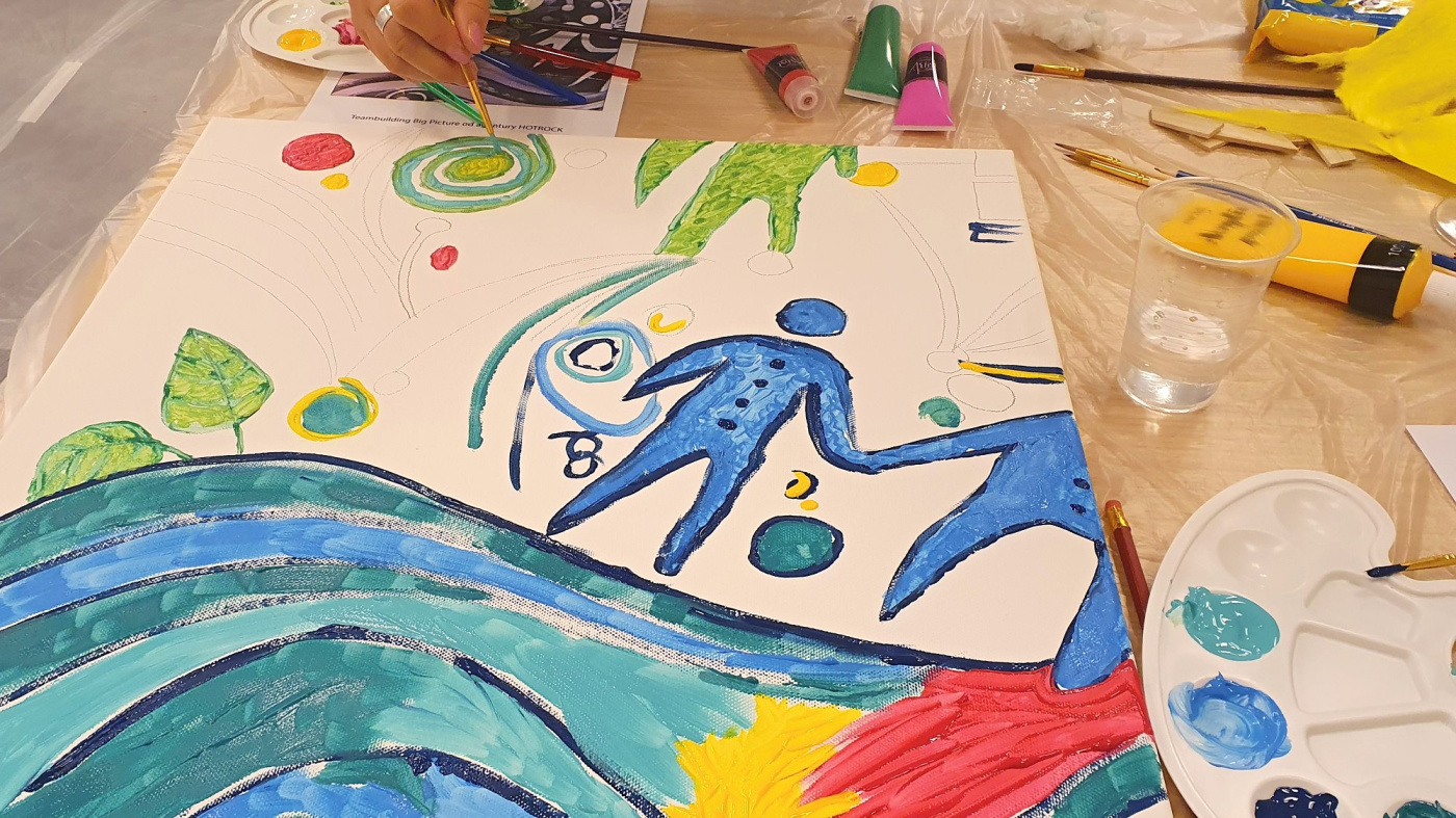 Team Painting ist das ideale Indoor-Teambuilding voller Kreativität, Zusammenarbeit und Spaß. Sie müssen keine Meister sein – es reicht die Lust zu schaffen und die Kräfte zu bündeln. Gemeinsam entsteht das Big Picture – ein großes Bild, zusammengesetzt aus einzelnen Teilen, an denen das gesamte Team beteiligt ist. Jeder malt ein anderes Stück, doch zusammen muss alles harmonieren. Eine großartige Aktivität zur Förderung von Teamzusammenhalt, visueller Kommunikation und der Fähigkeit, sich auf ein gemeinsames Ziel einzustellen – und dabei haben Sie jede Menge Spaß.