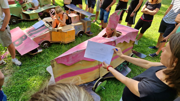 The grand finale – the actual race – stands out most outdoors: on a road, sidewalk, parking lot, or a quiet street. Of course, we can organize this teambuilding anywhere across the Czech Republic.